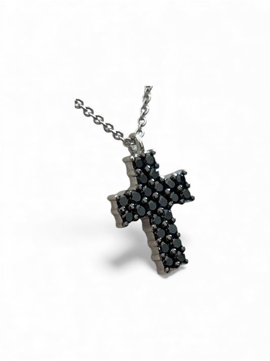 Girocollo Croce Oro Bianco 18 Kt E Diamanti Neri Crivelli 024-0612-4