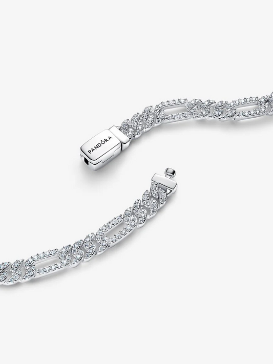 Bracciale Catena Maglia Cubana Pavè con Ovali Argento Sterling 925 Pandora 594227C01
