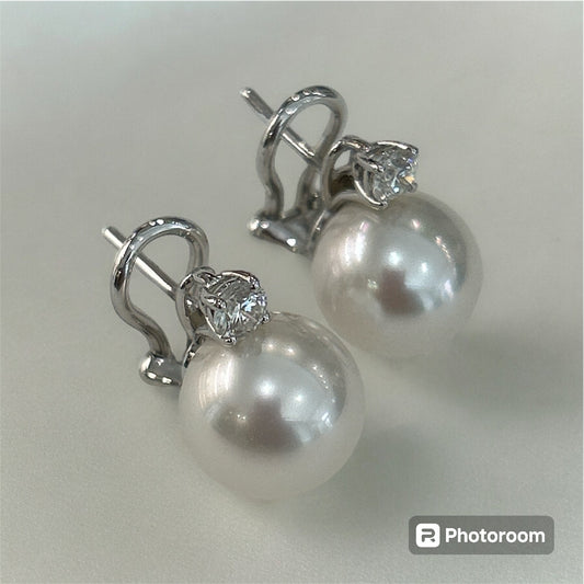 Orecchini Perla Punto Luce Oro Bianco 18 Kt E Diamante Crivelli 234-5655-12