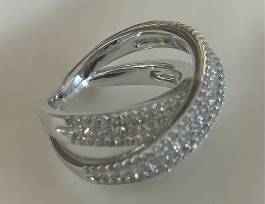 Crossed Band Ring in 18 Kt White Gold and Diamonds Crivelli 035-VR24661