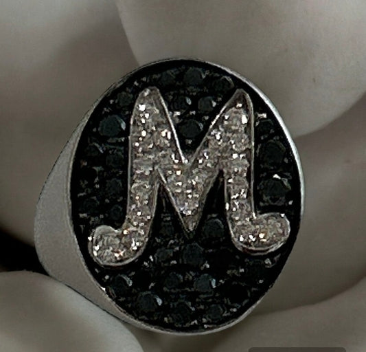 Initial M Chevalier Ring in 18 Kt White Gold and Diamonds Crivelli 303-334-M