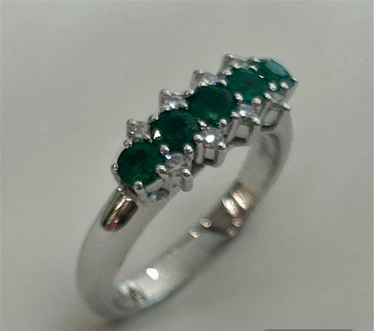 Ring with 5 Emerald and Diamond Stones in 18 Kt White Gold Crivelli 151-3770B