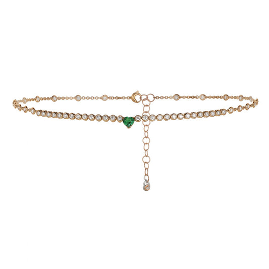 18 Kt Rose Gold Emerald Heart Tennis Necklace with Diamonds Crivelli 212-L1371
