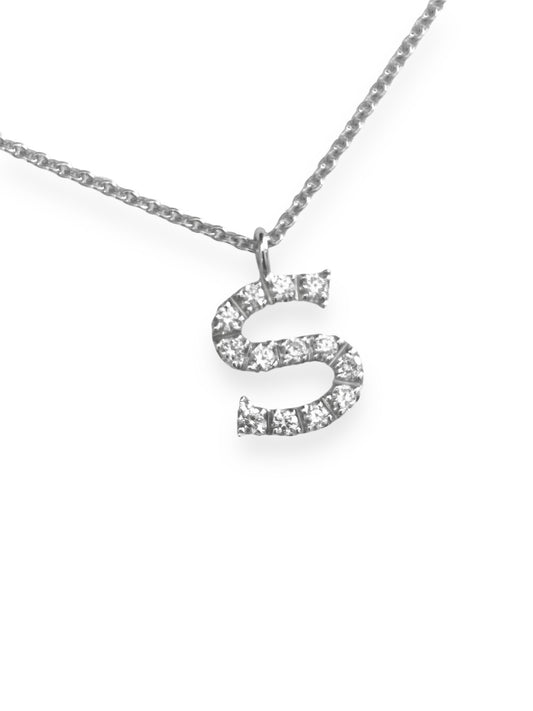Initial S Necklace in 18 Kt White Gold and Crivelli Diamonds 002-LETTERA-S