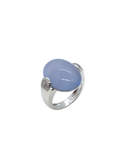 White Gold Ring Chalcedony Cabouchon Diamonds Crivelli 102-2033C