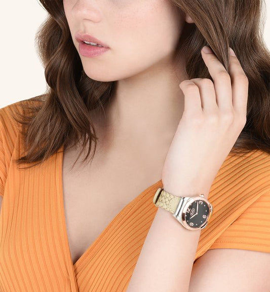 Black And Rose Watch Steel, Rose Gold PVD and Sand Leather 37 Mm Dodo Wad6ne/pvd
