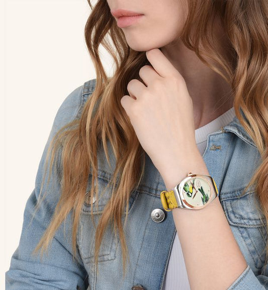 Songbird Watch Steel, PVD Rose Gold and Sunflower Leather 37 Mm Dodo Wad6pa/pvd