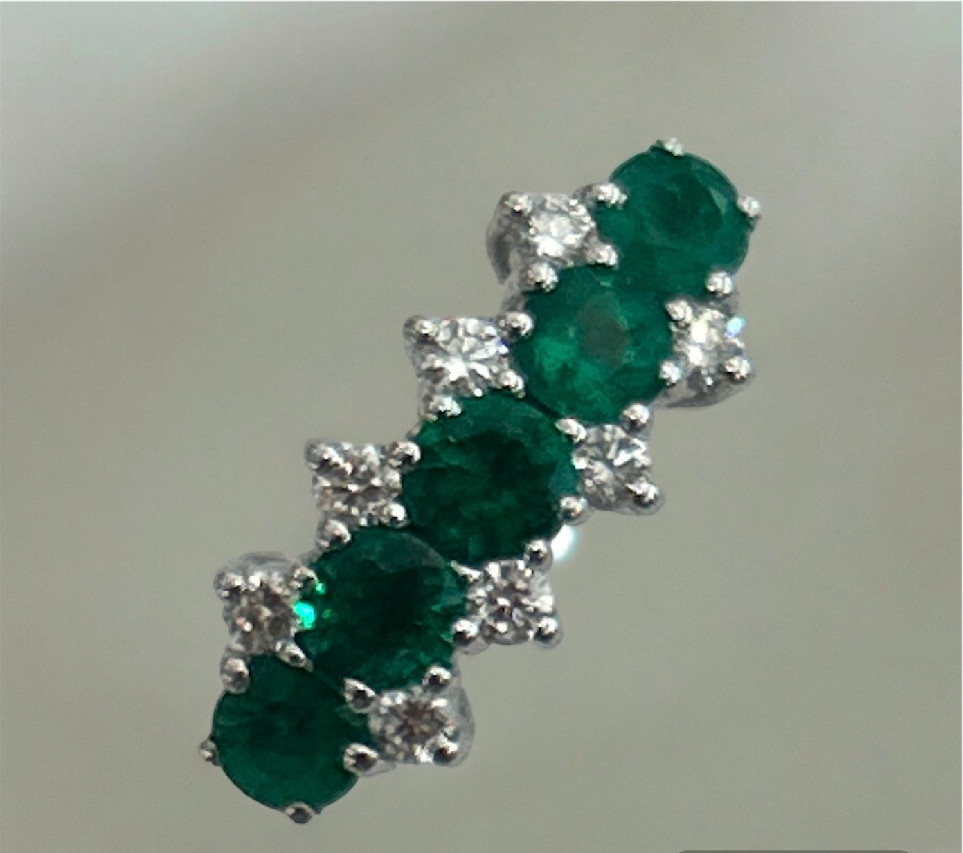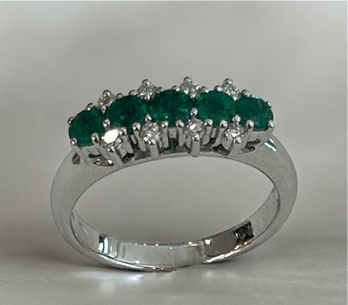 Ring with 5 Emerald and Diamond Stones in 18 Kt White Gold Crivelli 151-3770B