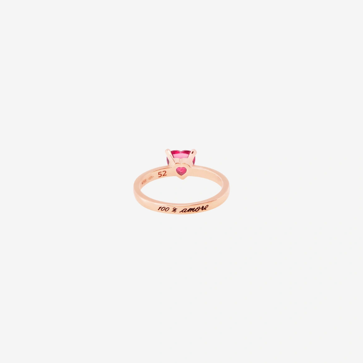 Heart ring in 9K rose gold with 1 synthetic ruby (0.87 ct) and 6 white diamonds (0.13 ct).