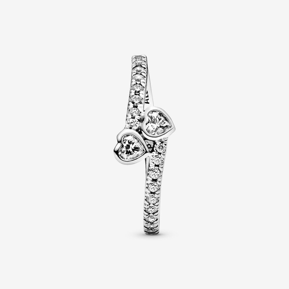 Hand-finished in 925 Sterling Silver, this Pandora heart ring embellished with sparkling cubic zirconia stones features two heart-shaped stones, a tribute to love and friendship.