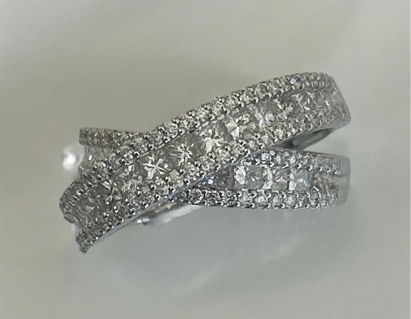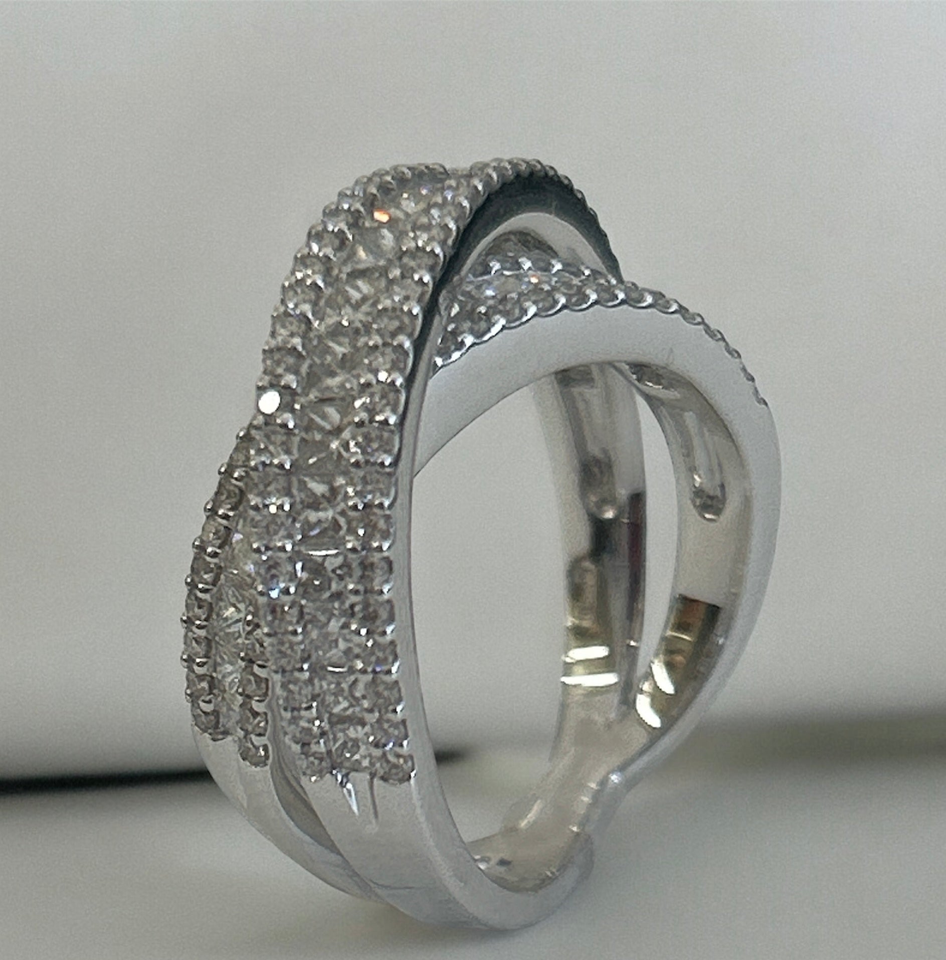 Crossed Band Ring in 18 Kt White Gold and Diamonds Crivelli 035-VR24661