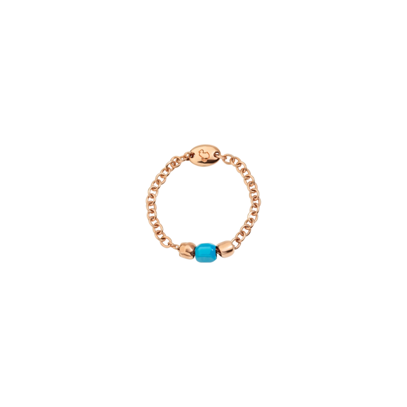 Anello mini granelli morbido in oro rosa 9K con granelli in oro rosa 9K e ceramica turchese.