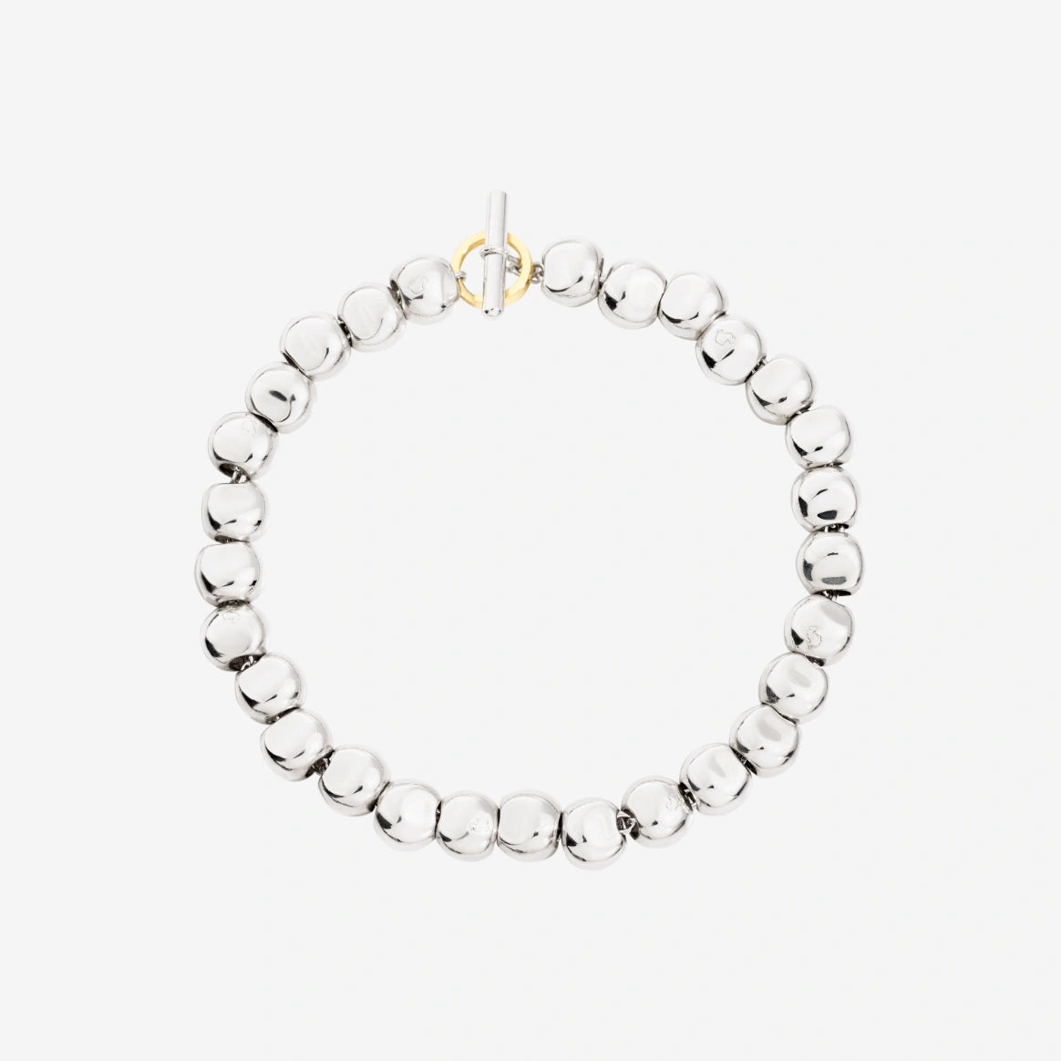 925 silver nugget bracelet, 925 silver chain and 18K yellow gold brisè ring.