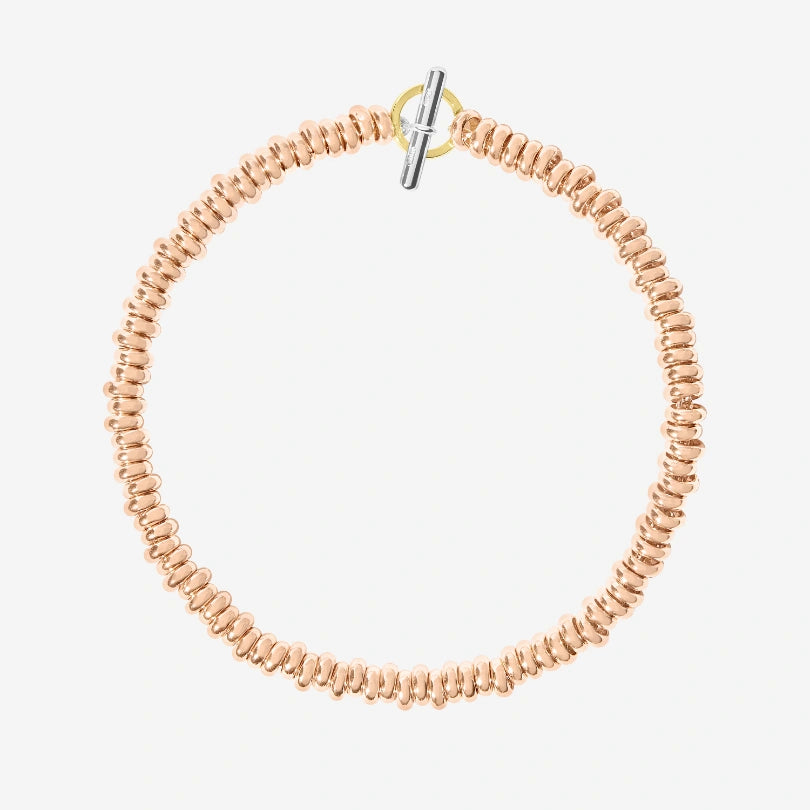 Rose gold rondelle bracelet, 925 silver chain with 18K yellow gold brisè ring. 925 silver needle included.