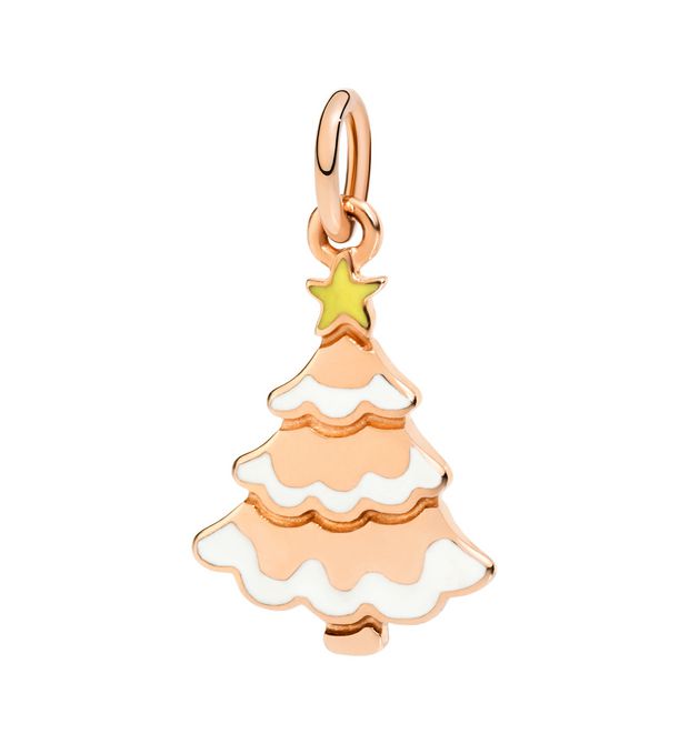 Christmas Tree Pendant 9 Kt Rose Gold, White, Black and Fluorescent Yellow Enamel Dodo Dmxmastree/9/k