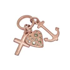 Good luck pendant with anchor and cross in 9 kt Rose Gold and heart with 0.16 ct Brown Diamonds.