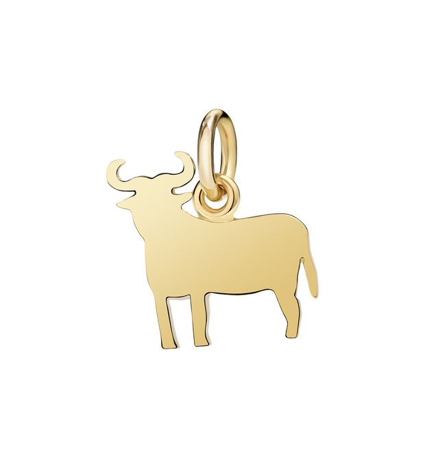 Bull pendant in 18 kt yellow gold weighing 2 g. Black cord included.