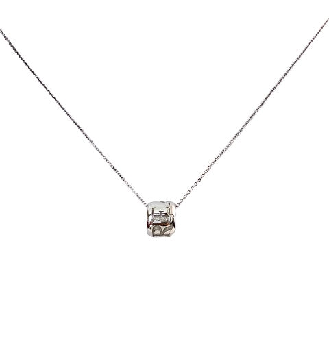 Love necklace in 18 kt White Gold 6.19 g with Sapphire cabochon on lobster clasp, 50 cm long.