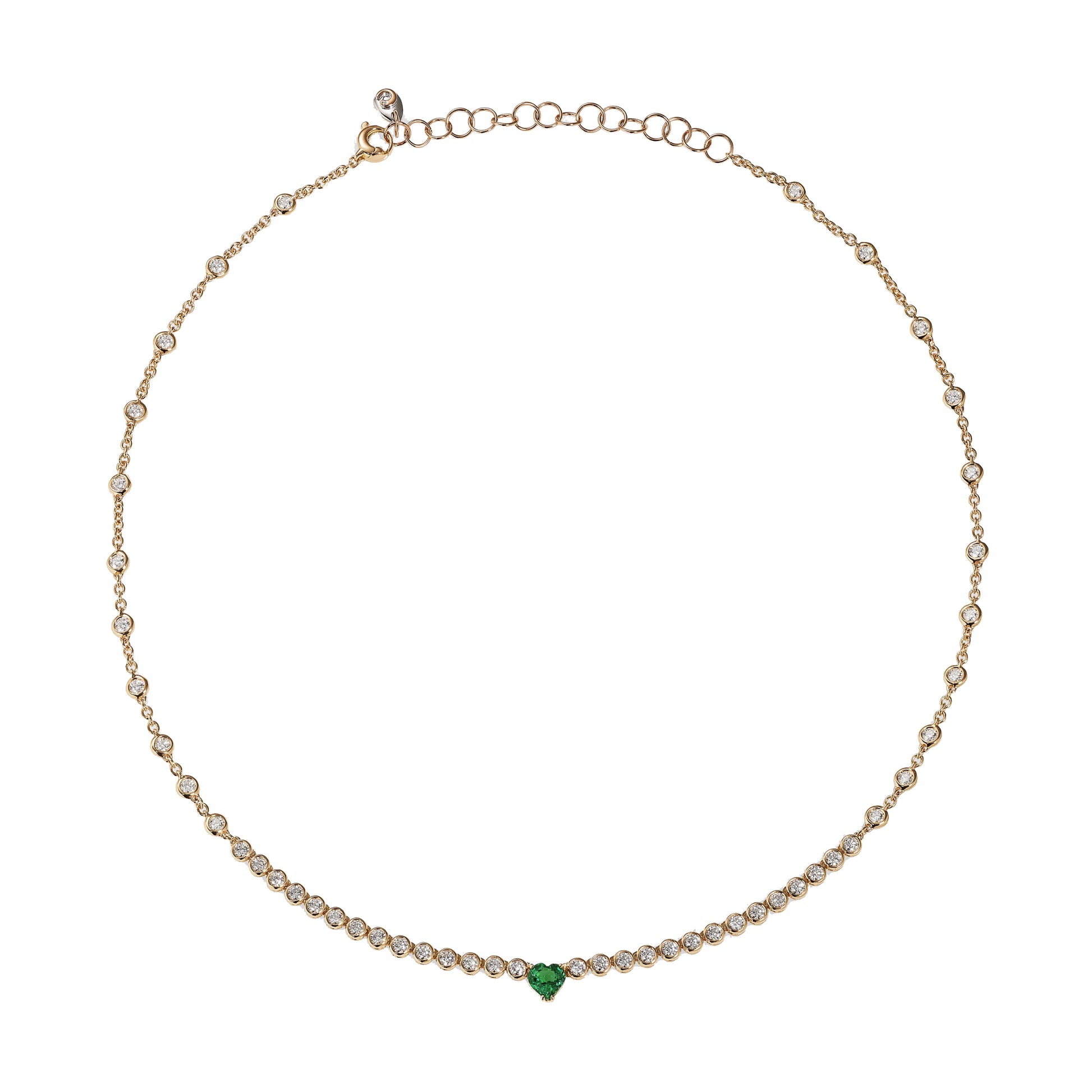 18 Kt Rose Gold Emerald Heart Tennis Necklace with Diamonds Crivelli 212-L1371