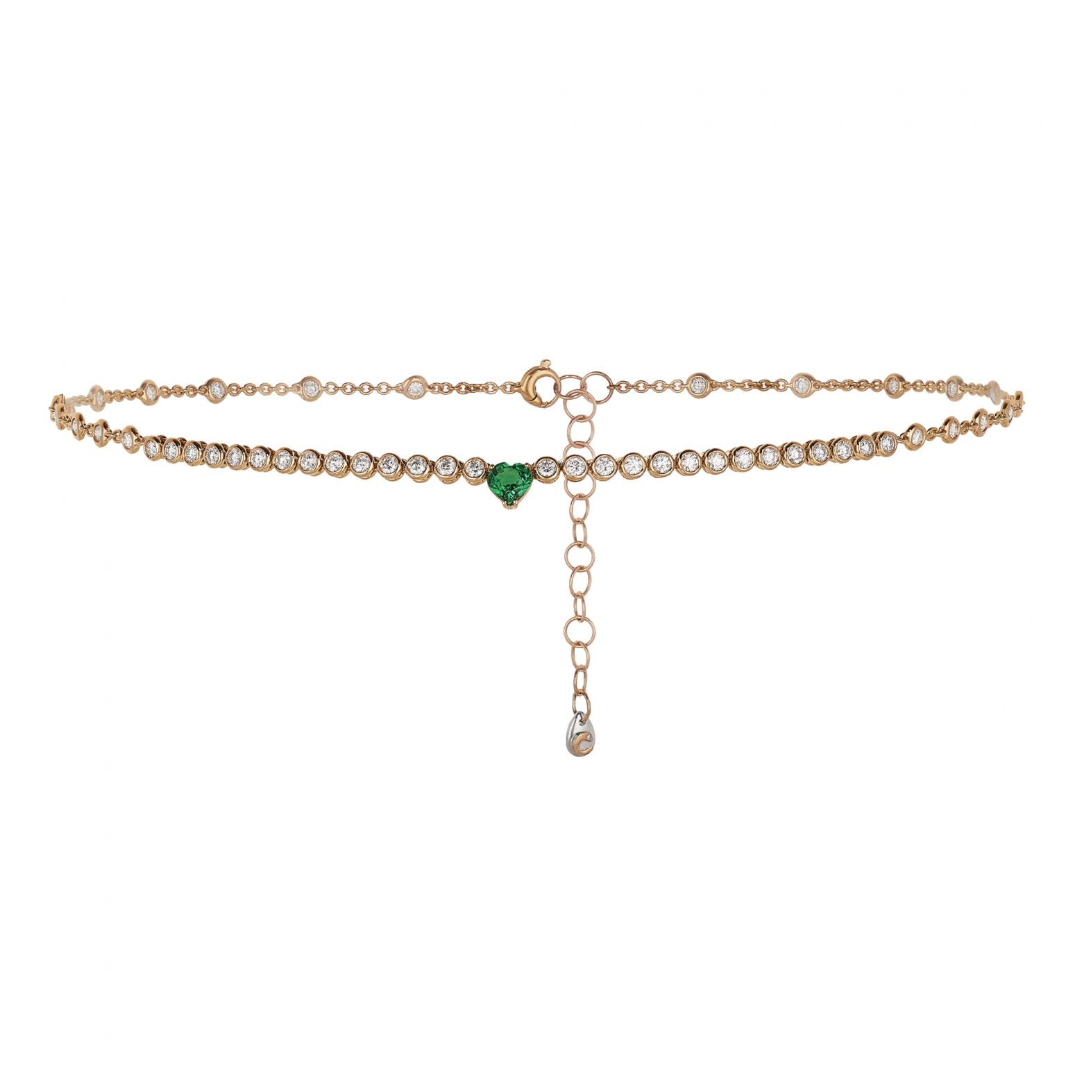 Choker in 18 kt rose gold, white diamonds and emerald.