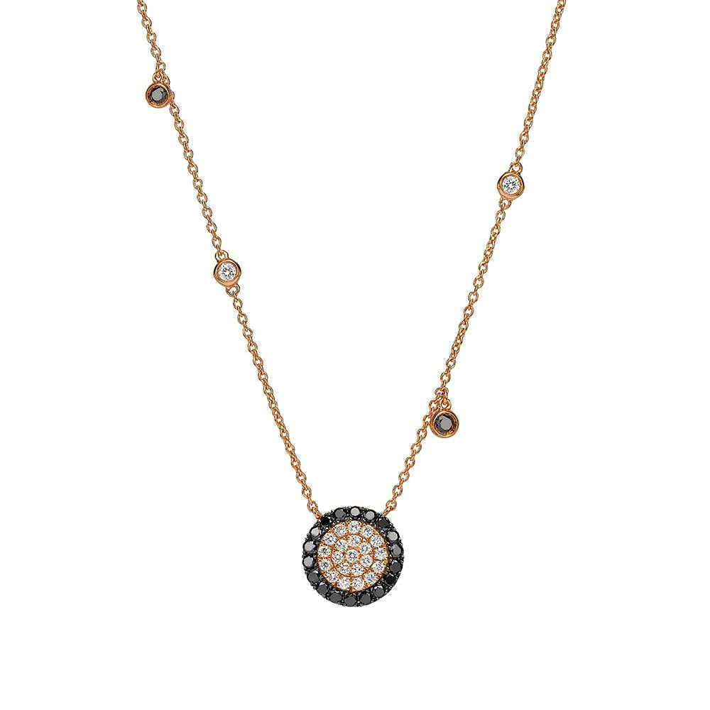 Necklace in 18 kt rose gold, 0.18 kt white diamonds G SI and 0.23 kt black diamonds