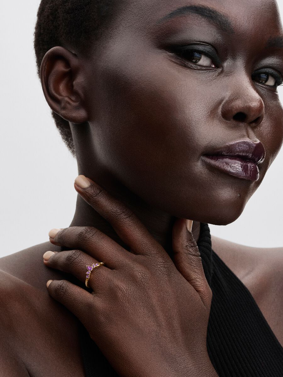 Dimostra la tua passione per Frozen Disney con il nostro anello Tiara rifinito in oro. Ispirato al calore e all’allegria della Regina Anna, l’anello presenta una costellazione di pietre viola che riflettono la luce.