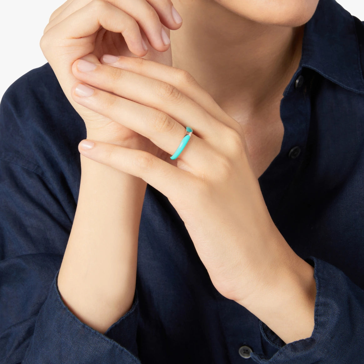 Anello rondelle in argento dorato oro rosa 18K e smalto bi-color turchese.