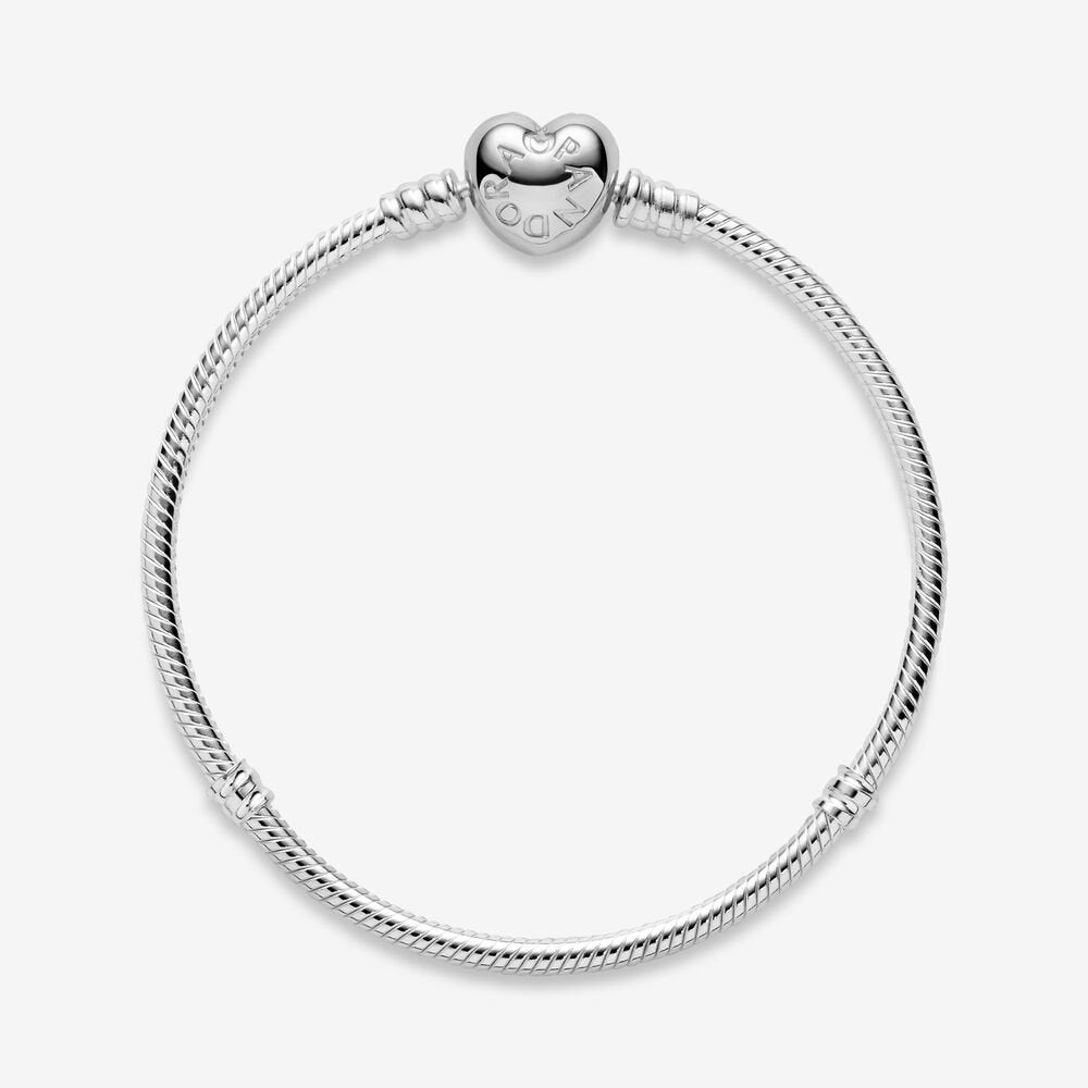 Fai palpitare il tuo cuore con questa romantica versione del bracciale charm Pandora più amato di sempre. Rifinito a mano con chiusura a cuore, questo bracciale in maglia snake in Argento Sterling 925 è splendido indossato da solo, ancora più spettacolare se impreziosito dai charm e dalle clip Pandora che ami di più. Abbinalo ad altri bracciali Pandora in maglia a contrasto, per un look a strati raffinato.