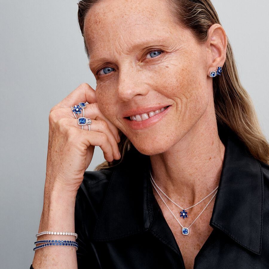 Un gioiello destinato a durare per sempre. Realizzato in Argento Sterling 925, questo Bracciale Tennis presenta 47 cristalli blu creati in laboratorio taglio brillante rotondo. Il bracciale è completato da una pietra che pende dalla chiusura, che è regolabile su tre lunghezze. Indossalo da solo o abbinalo ad altri bracciali in finiture metalliche e colori diversi per creare una composizione elegante.