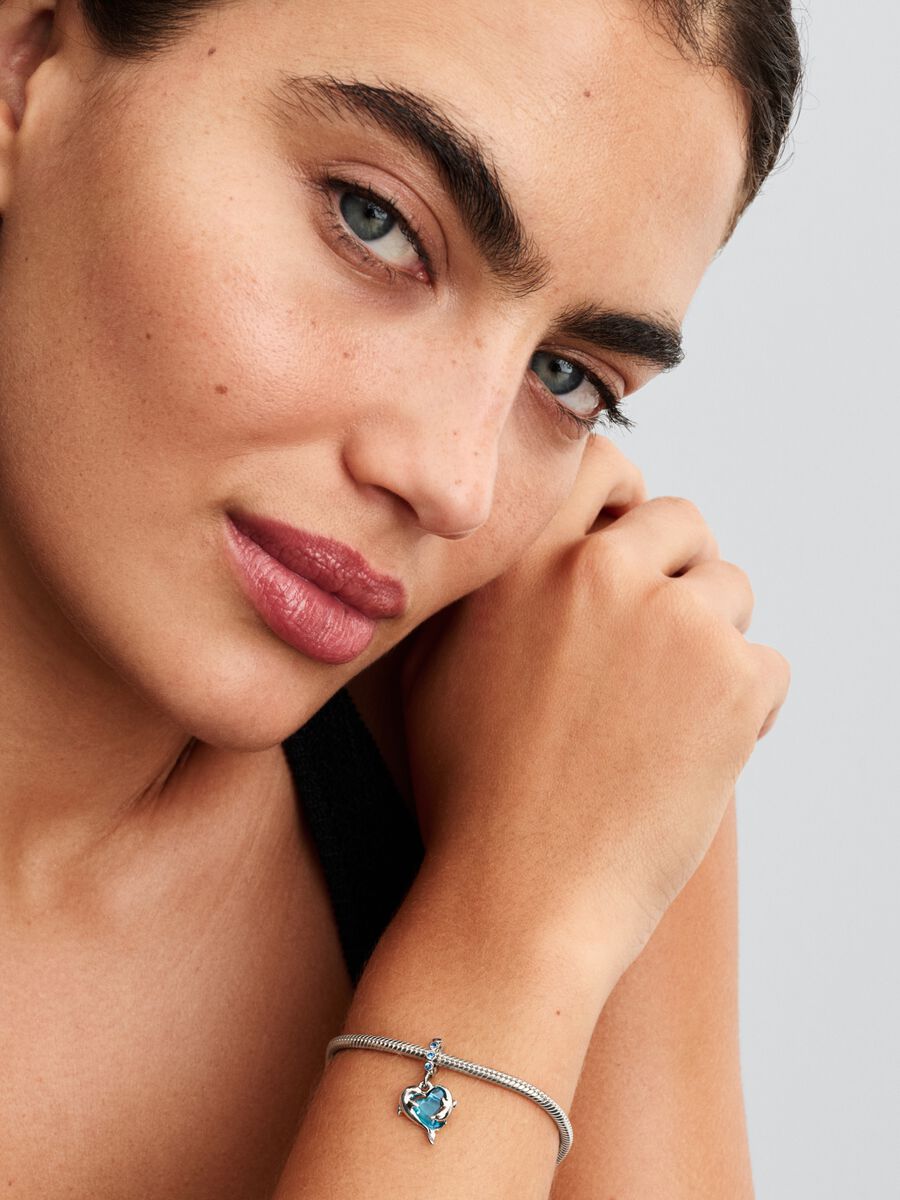 Charm Pendente Delfini e Cuore Vetro di Murano Argento Sterling 925 Pandora 793924C01