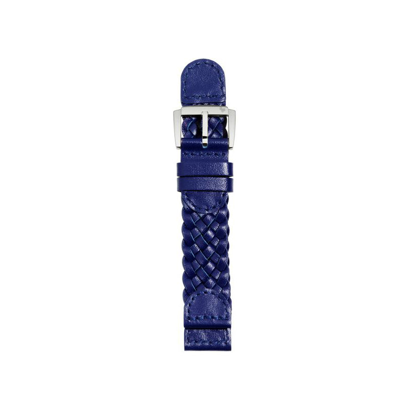 Cinturino in pelle intrecciata blu inchiosto con fibbia in acciaio lucido. Questo cinturino è compatibile solo con orologi Dodo con cassa diametro 37 mm