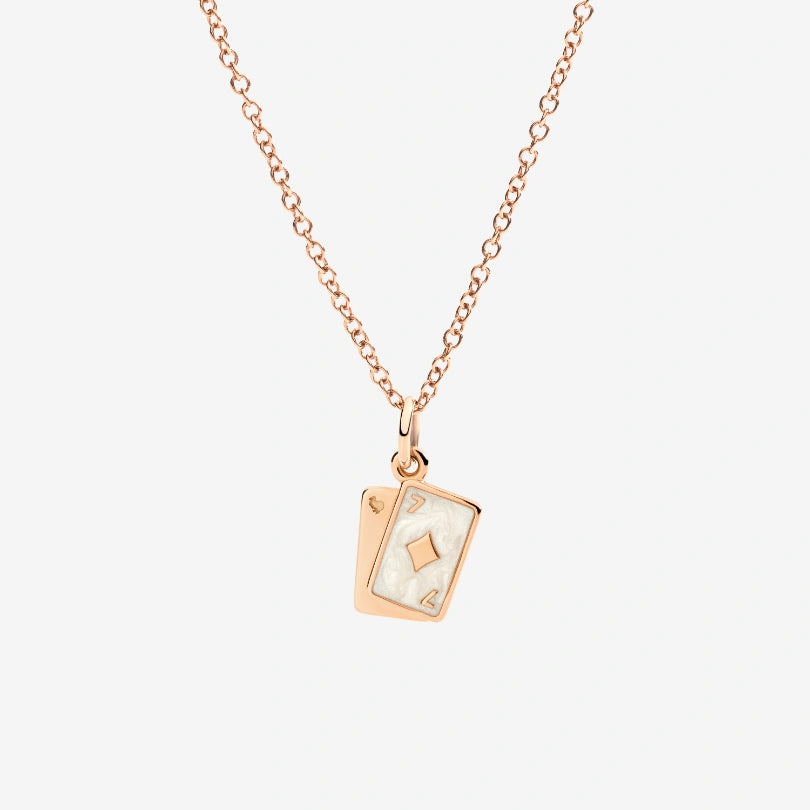 Ciondolo Carte in oro rosa 9K e smalto perlato bianco.