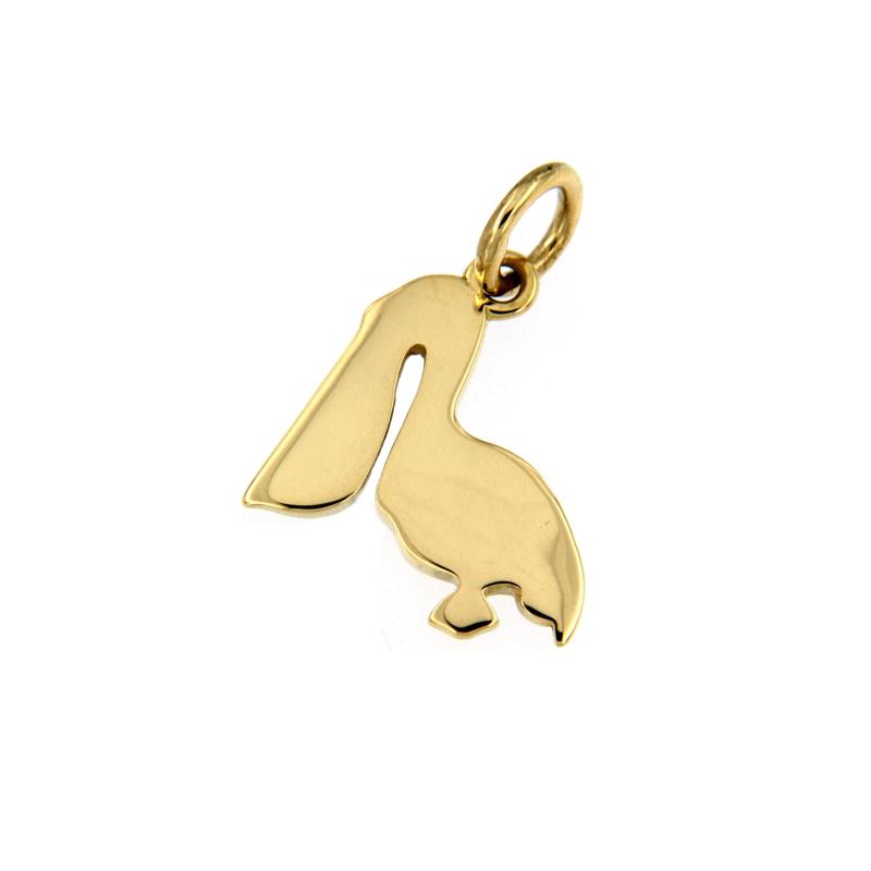 Ciondolo pellicano in Oro Oro Giallo 18 kt da 1 gr. Cordino nero incluso.