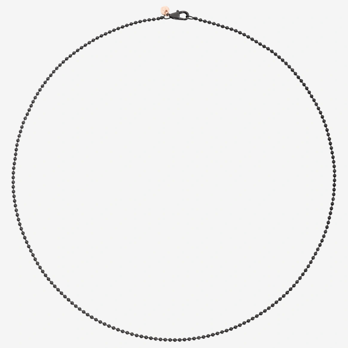 Collana bollicine in acciaio e pvd nero con piastrina in oro rosa 9K.