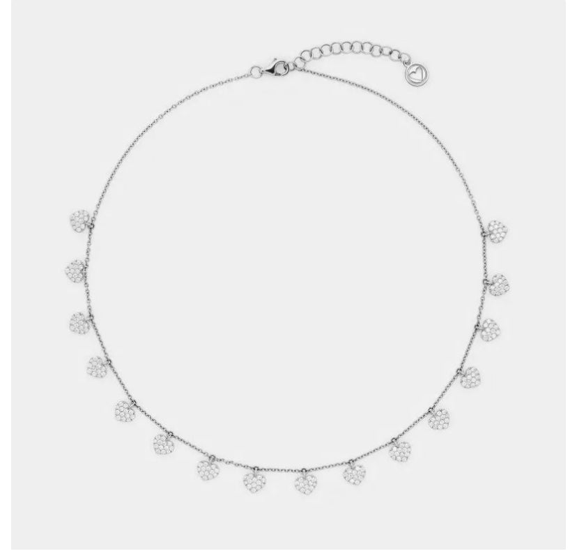 Collana Cuoricini Oro Bianco 18 Kt E Diamanti Crivelli 234-5723