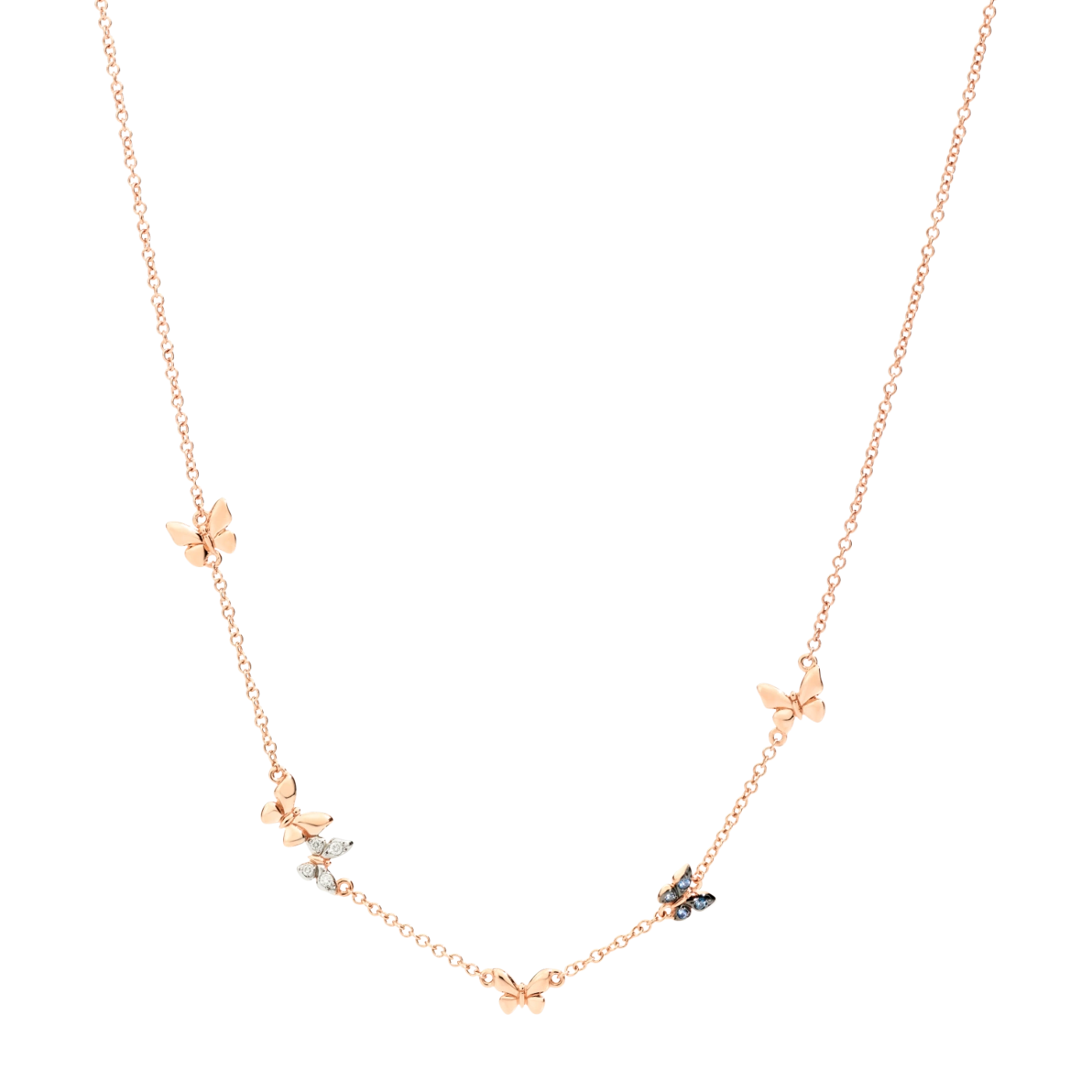 Collana Farfalla Preziosa Oro Rosa 9kt Zaffiri Azzurri Diamanti Bianchi Dodo DCC2005_BFLYS_BAZ9R