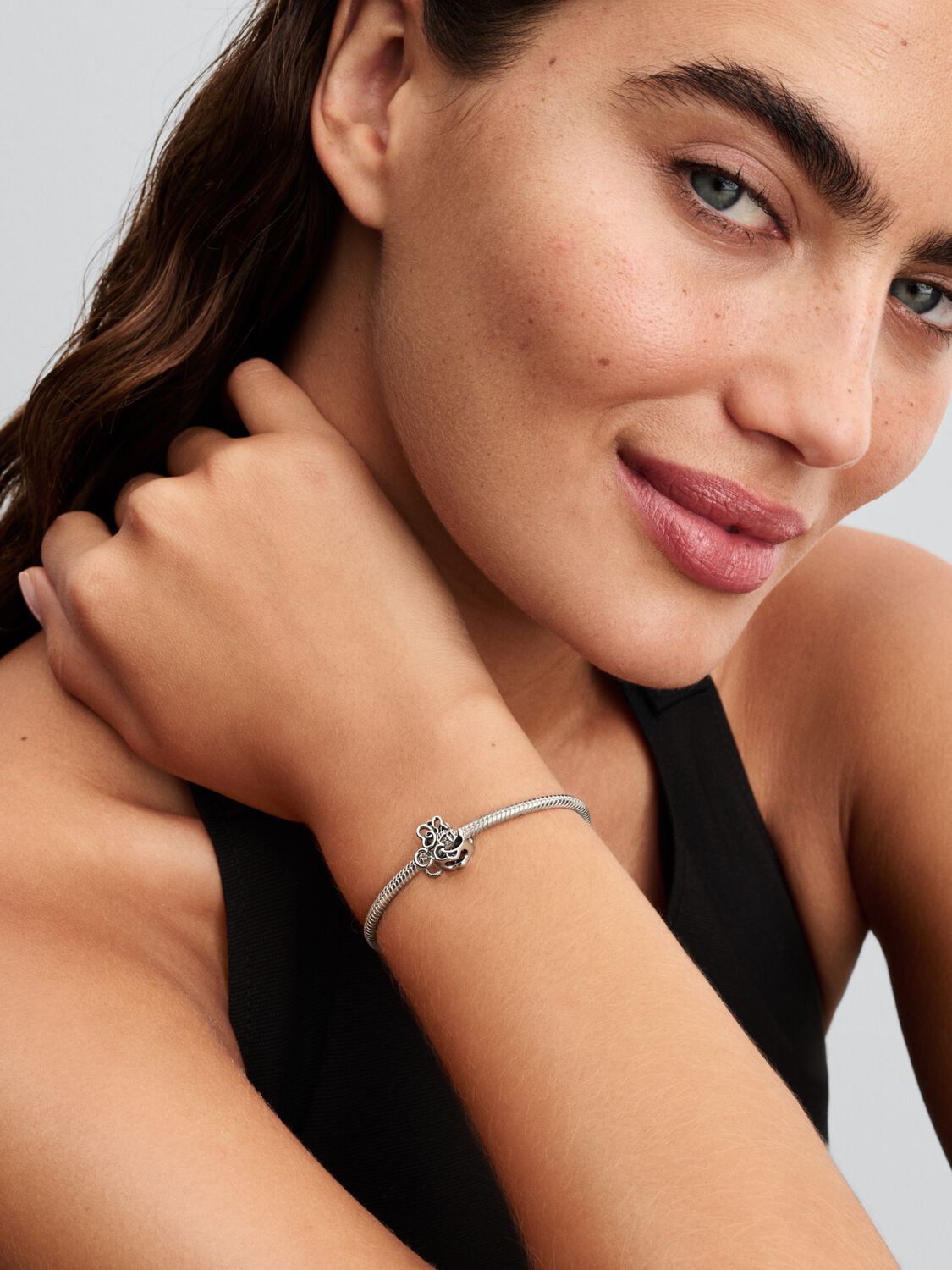 Vivi la magia Disney con un charm in argento sterling che raffigura la sagoma della testa di Minnie