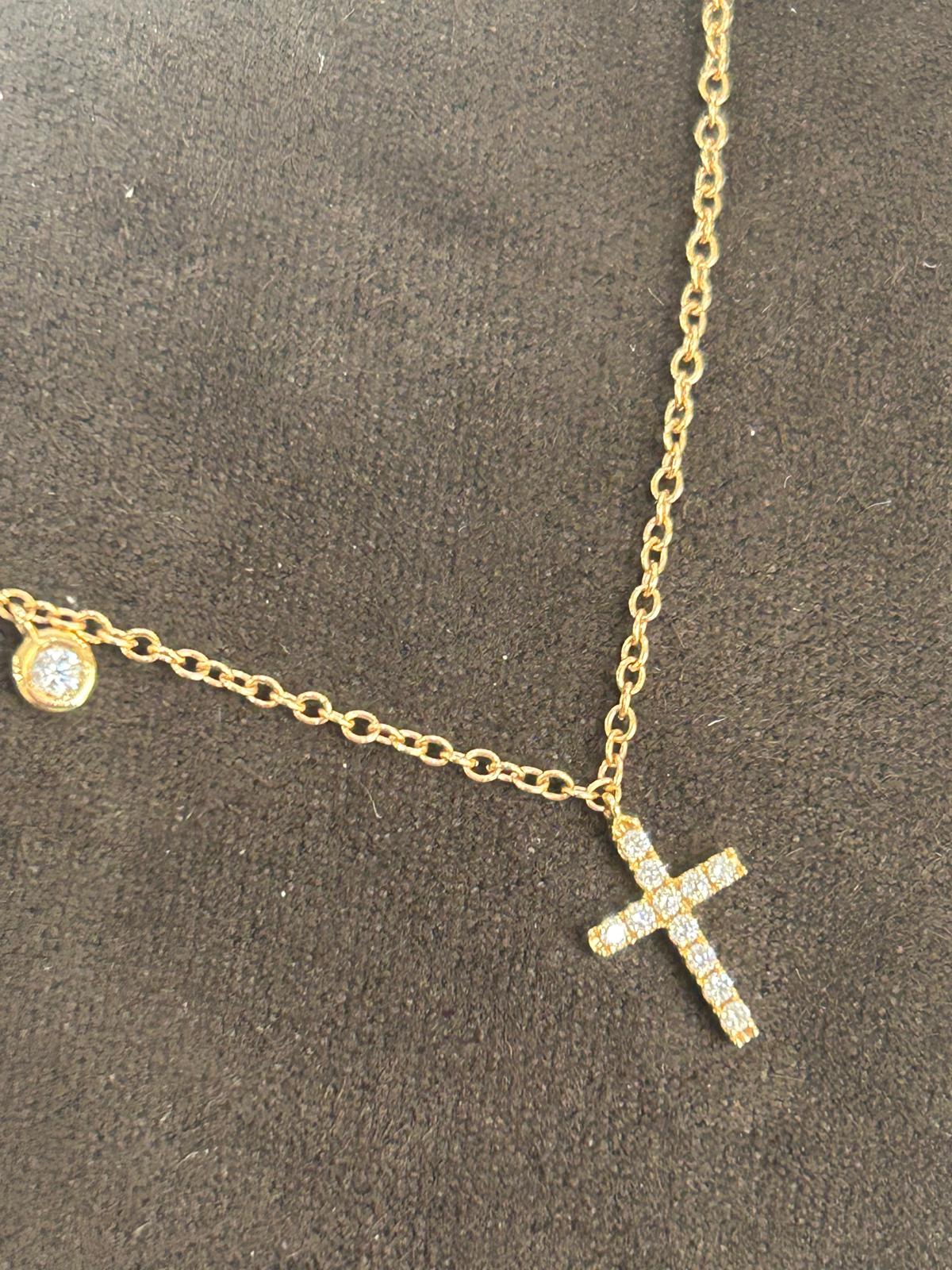 Girocollo Croce Oro Rosa 18 Kt E Diamanti 234-3576-G