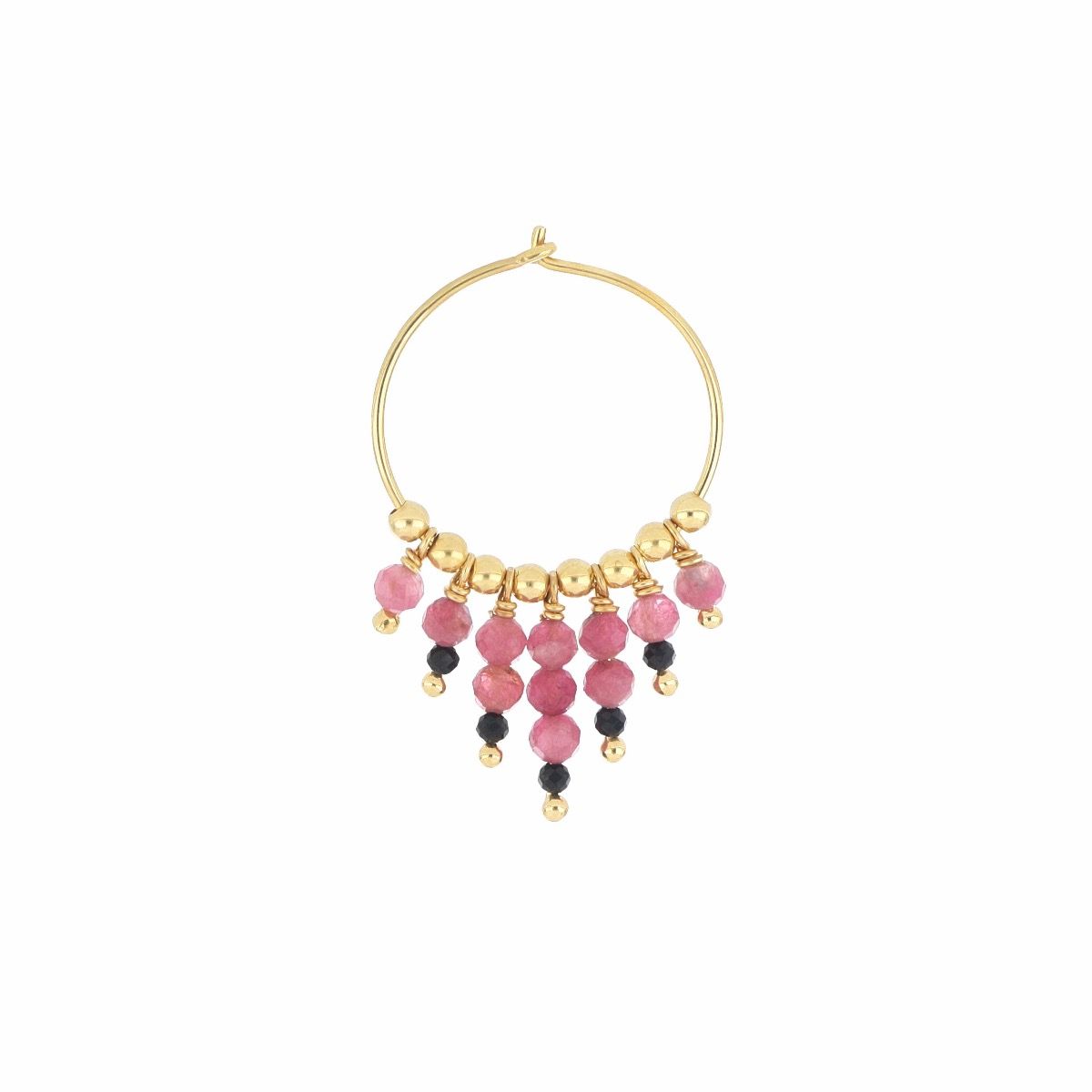 Orecchino a cerchio singolo con pietre di tormalina e spinello sfaccettate pendenti.