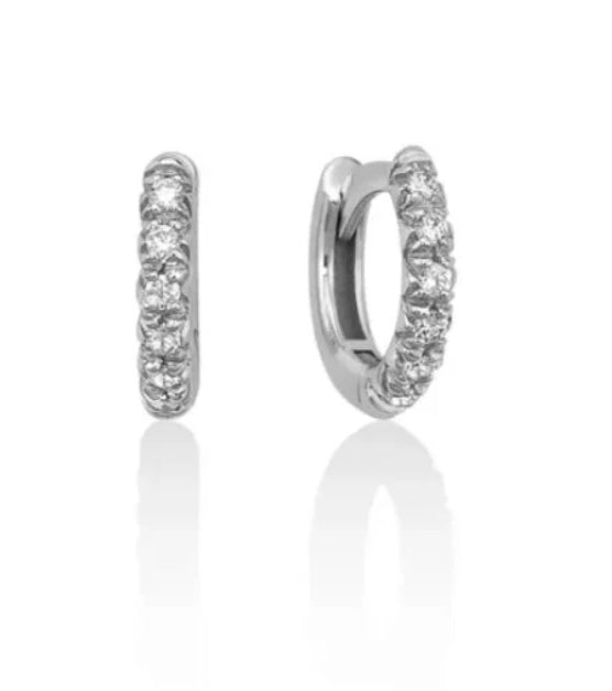 Orecchini da donna, eleganti cerchietti in oro bianco 18kt. Un raffinato gioiello di 8mm con dodici diamanti naturali per totali 0.072ct, colore G, purezza SI.