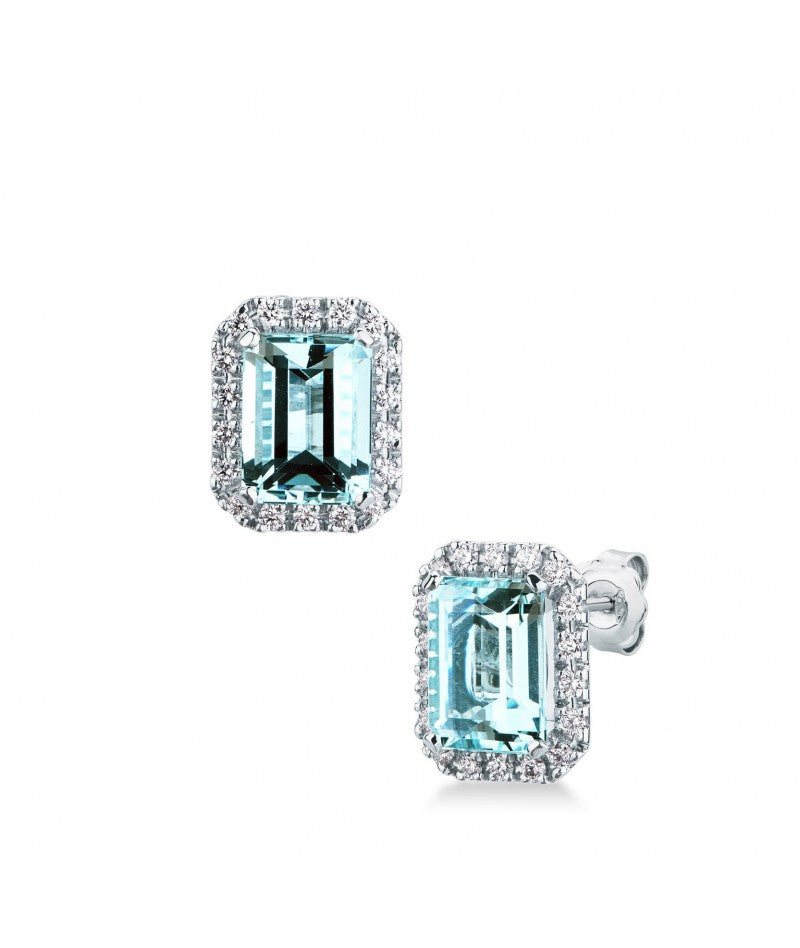 Orecchini da donna del brand Mirco Visconti con acquamarina e diamanti a pavé.
