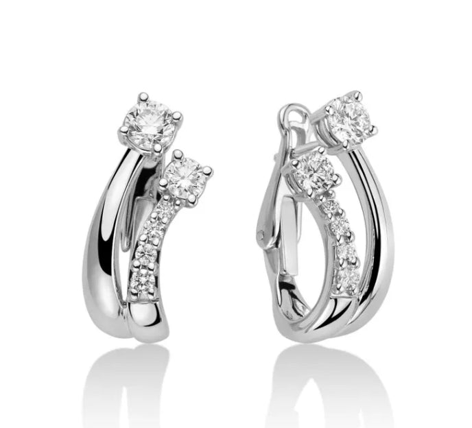 Orecchini con Doppio Punto Lune e Diamanti in Oro Bianco Miluna ERD2437