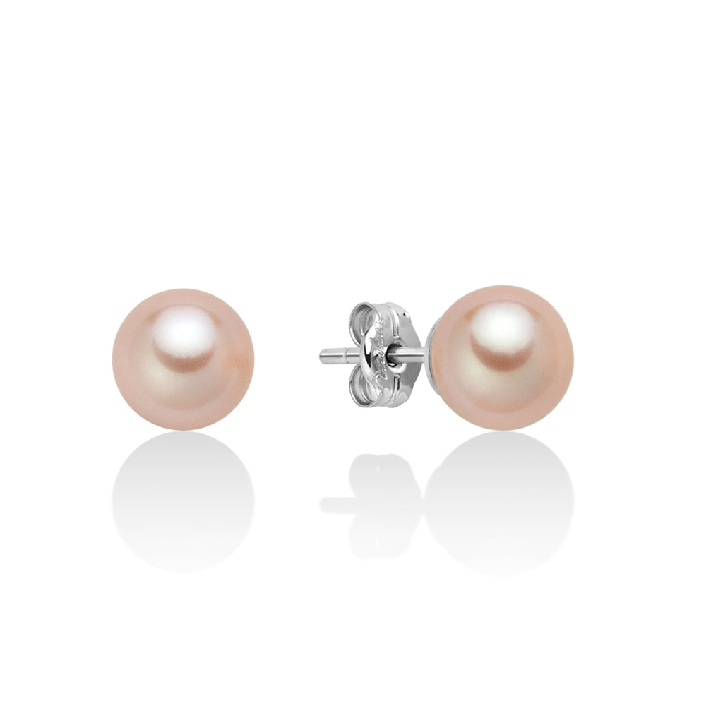 Orecchini di Perle Color Pesca 7-7,5 in Oro Bianco Miluna PPN775BPMV