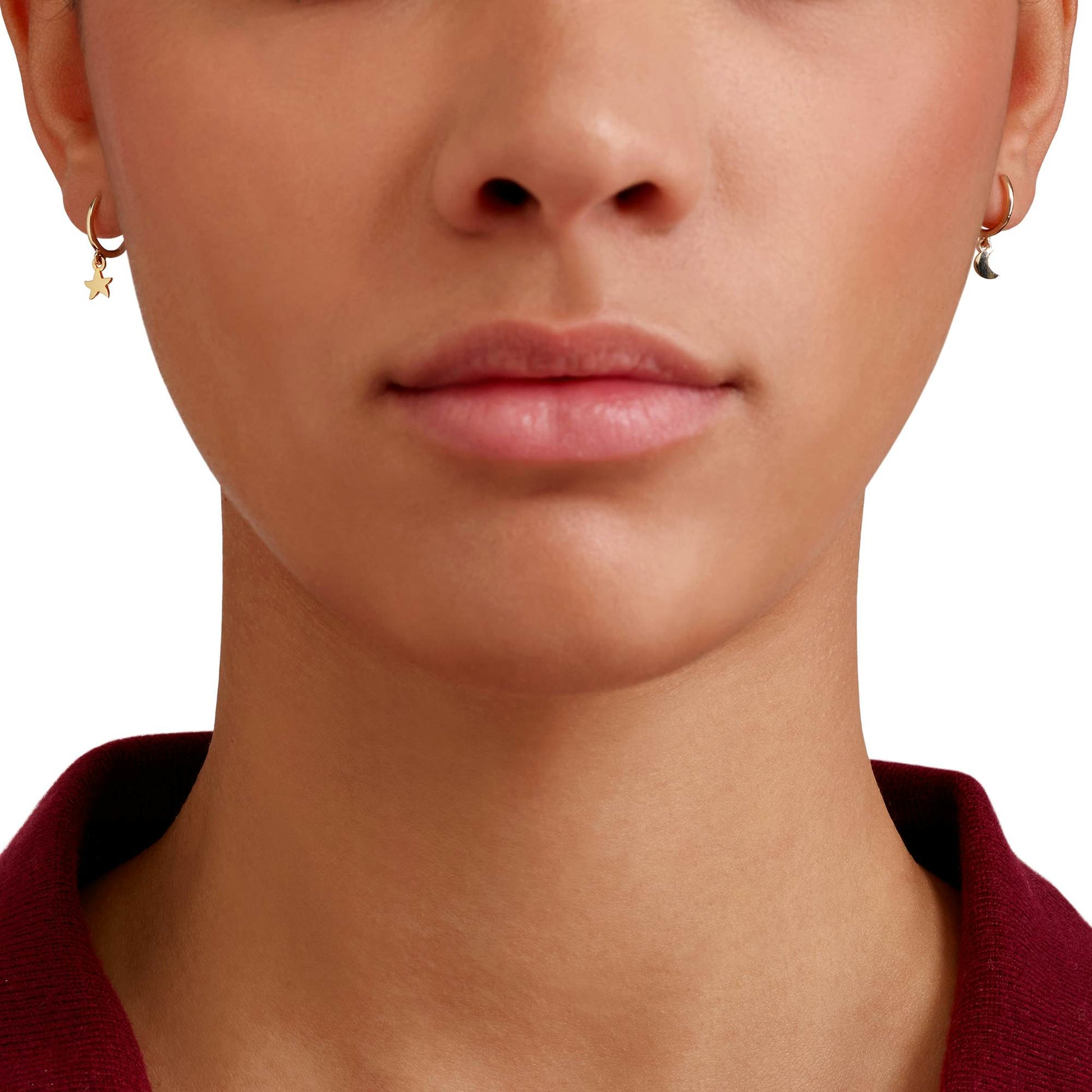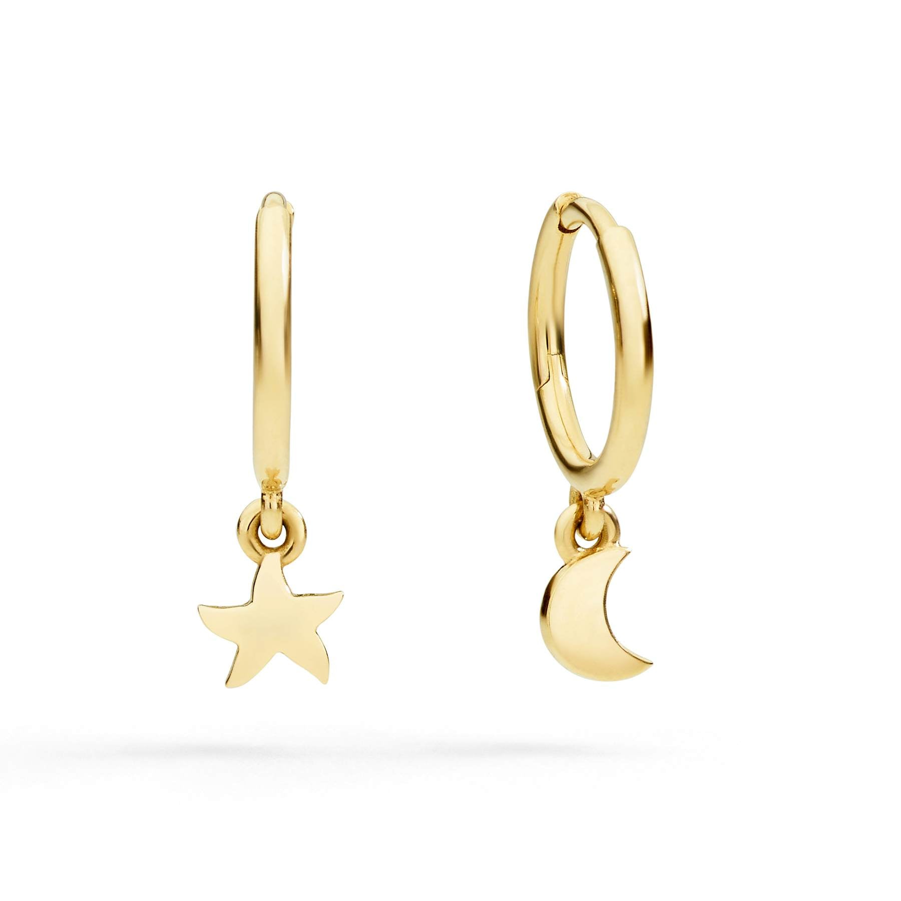 Orecchini hoop stellina e luna in oro giallo 9K. Paio.