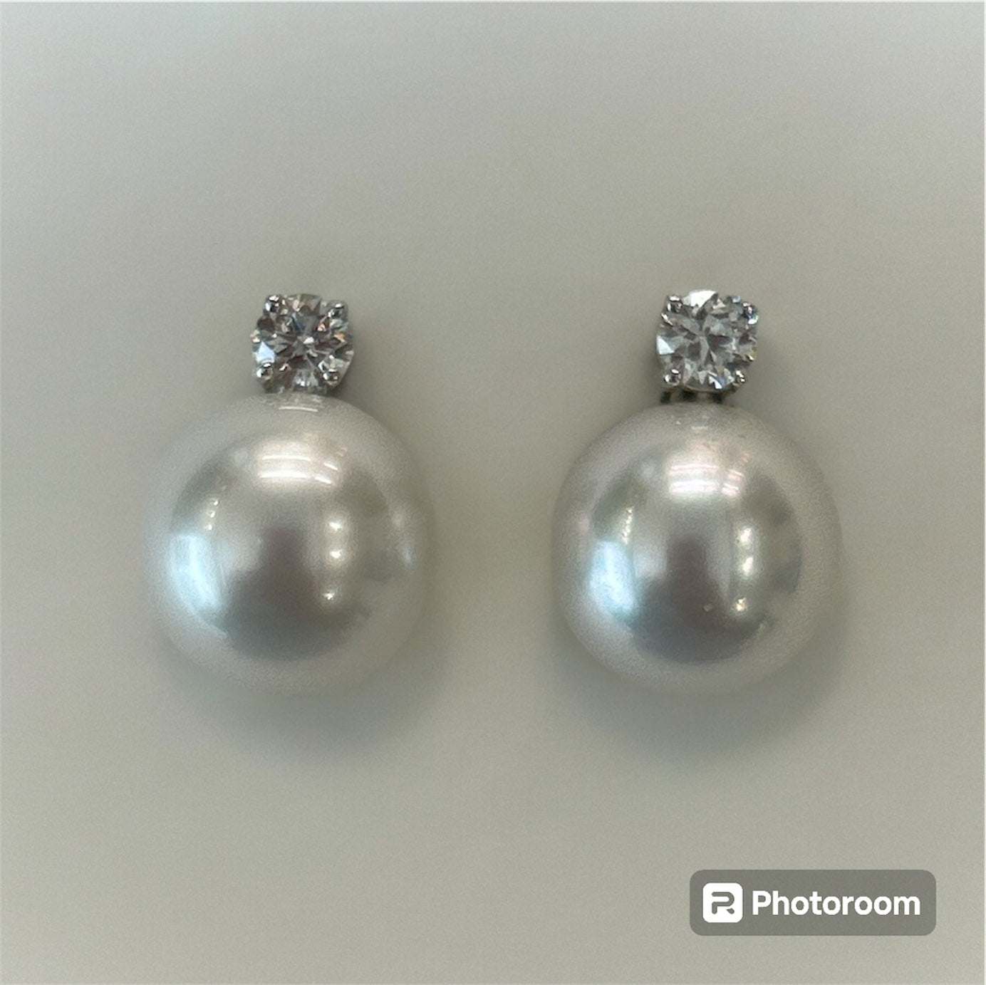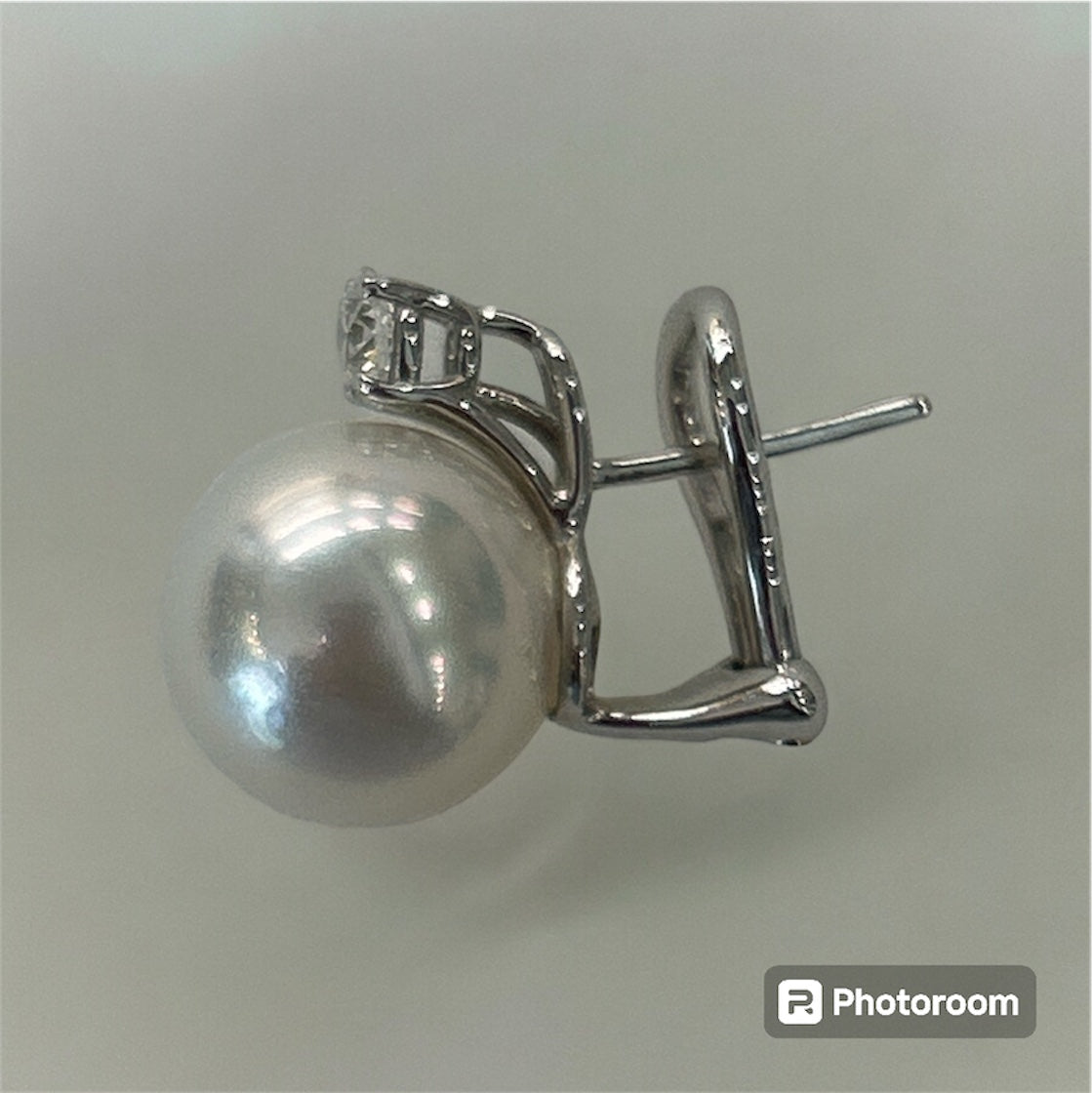 Orecchini in oro bianco 18 kt, diamanti e perla australiana mm 12,10
